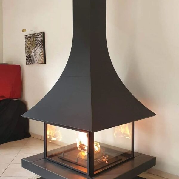 Բուխարին չորս կողմից ապակեպատ է, հիմնականում տեղադրվում է սրահի կենտրոնում, որպիսի կրակը երևա սրահի բոլոր կողմերից։ Բուխարու երկու դռները բացվում են, ունի մաքուր ապակի և դանդաղ այրում համակարգեր։