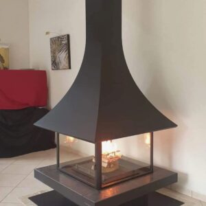 Երեք ապակիով, վերև բարձրացող դռնակով բուխարի